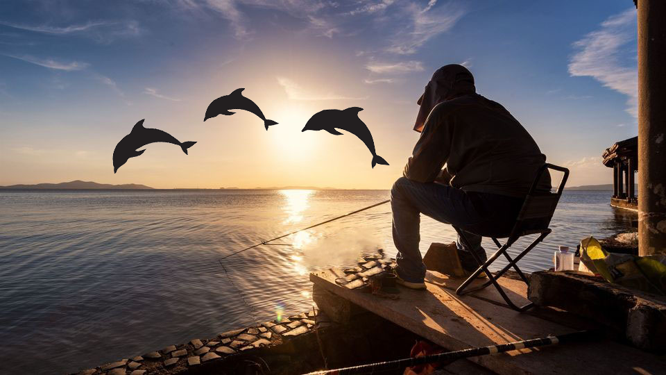 Imagina esto: estás en tu tranquila jornada de pesca, disfrutando de la brisa marina y el sonido relajante de las olas rompiendo en la costa. De repente, algo extraordinario sucede. Mientras lanzas tu caña al agua, tres elegantes delfines emergen en un arco perfecto, saltando con gracia y alegría. El resplandor del sol reflejándose en sus cuerpos te deja maravillado.